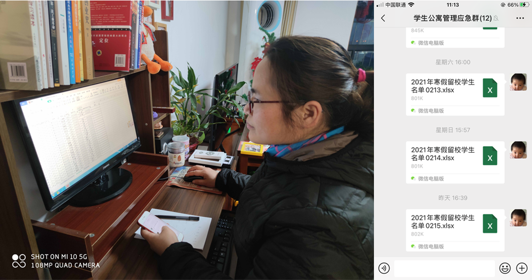 今年春节,为了配合学校做好寒假期间学生安全管理工作, 从1月23号开始,她每天下午4点前会在工作群里上报学生信息,让学校能第一时间掌握学生动态,让学校放心。