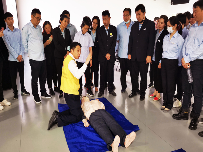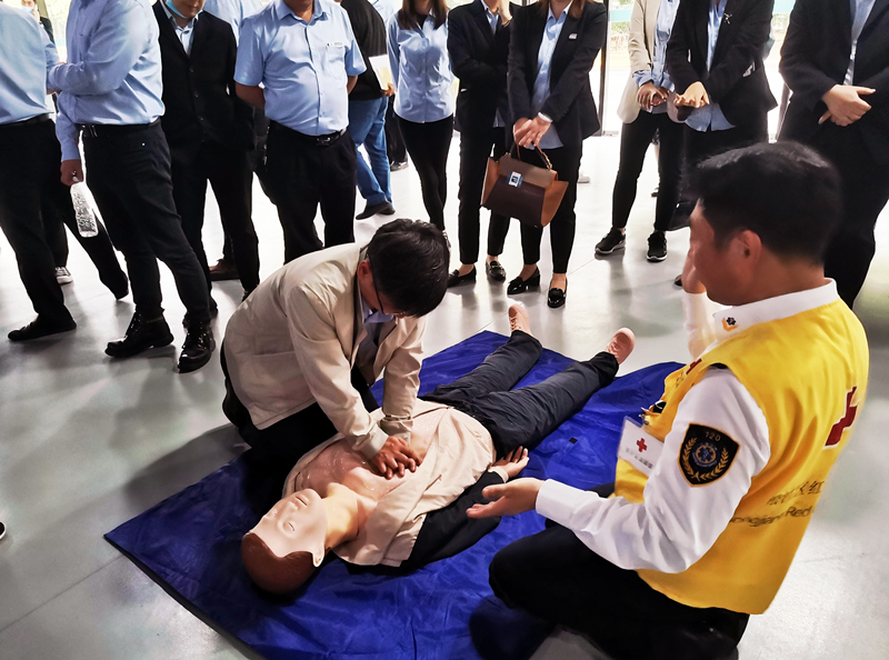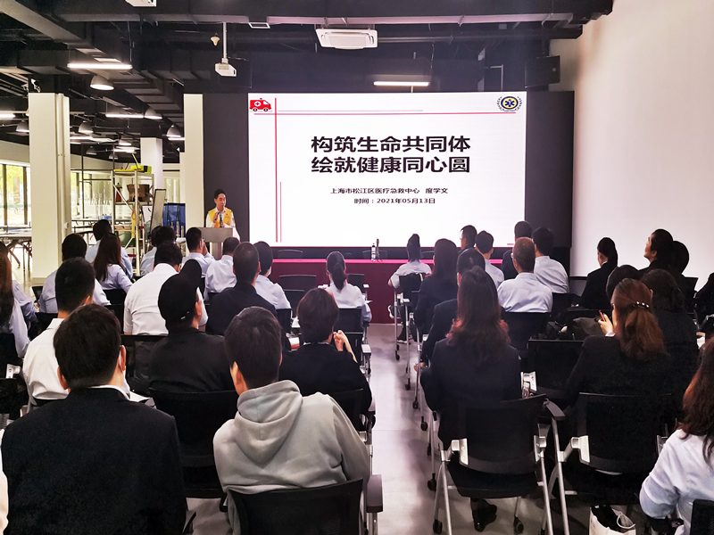 会后,由上海市松江区医疗急救中心专家为大家作安全急救知识培训,每个人还现场进行了心脏复苏的实操。