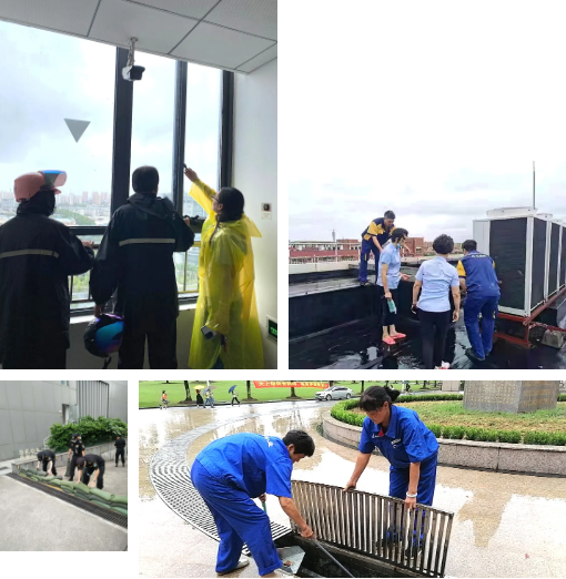 各管理部在思想上高度重视、针对性做好防御措施;在行动上抓紧落实,全力以赴保障学校师生、员工生命安全;在纪律上严格执行,落实24小时值班制度,确保抢险人员和物资及时到岗到位,全力落实台风防范工作措施。