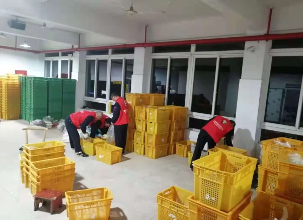 10月31日-11月9日,10个昼夜,公司海事管理部选派的四名进博服务员工加班加点连轴转,成为蔬菜分类装筐的主力军。每天早上8点开始工作,从蔬菜拆封再分类,到粘贴所分送部门的标签,再到重新装筐装车,面对这种高强度工作, 他们始终一丝不苟,一道道工作流程井然有序。为了加快配送速度,多装筐早发车,他们早上连续奋战7个多小时,等到停下来吃中饭时,已经是下午14点钟之后了;匆匆午饭后,顾不得片刻休息,他们又紧接着投入到夜战阶段,几乎每天凌晨3:00才收工。他们一天中最大装筐量达到860多筐。